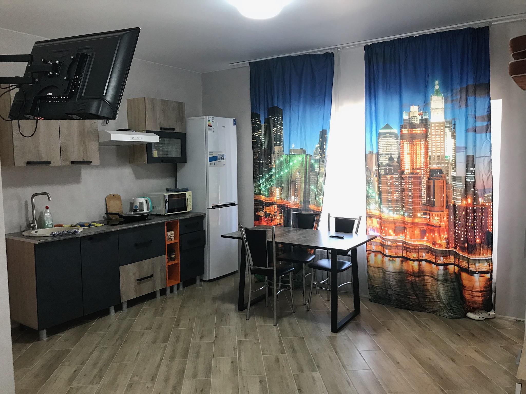 На закрытой территории, предназначенной для аренды квартир посуточно, расположена детская площадка общего пользования.